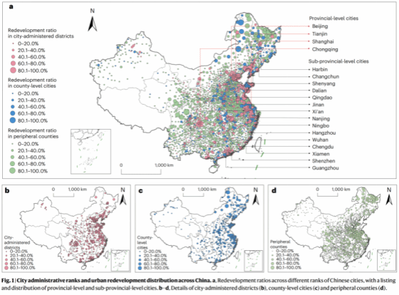 人文与城市地理研究团队,与中国科学院地理科学与资源研究所等单位合作,共同在Nature Cities发表题为“Regulatory effect of China’s city hierarchy on urban redevelopment”(中国城市等级体系对城市再开发的调控效应)的研究论文,团队负责人王亚平院士为论文的共同通讯作者。