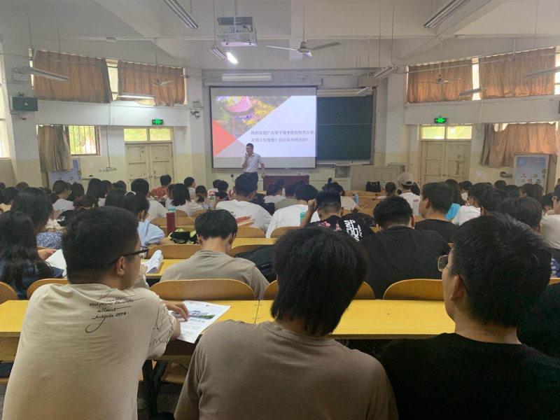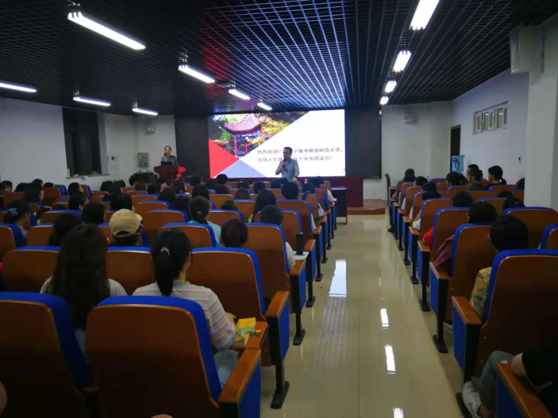 在宣讲现场,宣讲教师积极为各学子进行答疑解惑,推荐宣传学校,鼓励其报考陕西师范大学研究生。