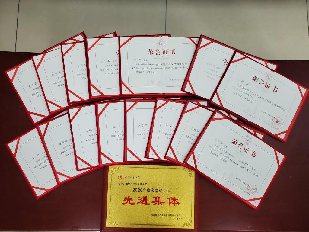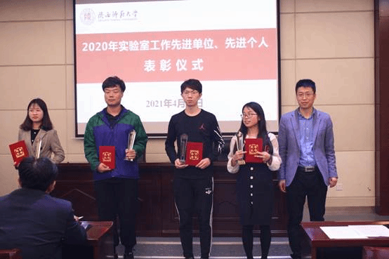 领取奖牌;贠疆老师获得实验室先进个人称号;《实验室不安全展示》获得实验室安全宣传微视频创作大赛一等奖;李敏睿老师获得微视频大赛优秀指导教师。