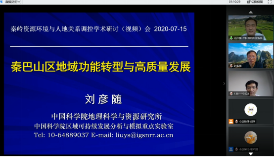 、陕西省旅游信息科学重点实验室承办的“秦岭资源环境与人地关系调控学术研讨会”在线上顺利举办。来自中国自然资源学会、《自然资源学报》编辑部、中国科学院、西北大学、长安大学、兰州大学、西南大学、河南大学、西北农林科技大学、成都信息工程大学、暨南大学等20家单位的30多位国内外知名专家学者作为主讲嘉宾出席大会特邀报告和学术分论坛。