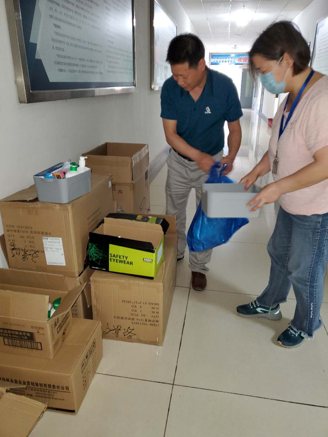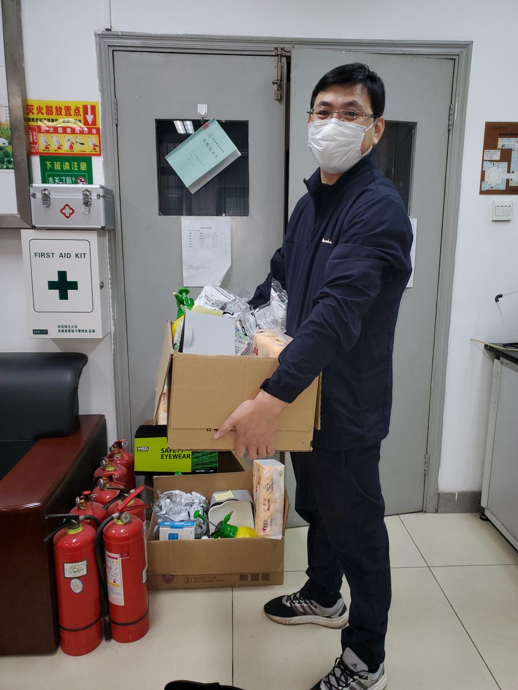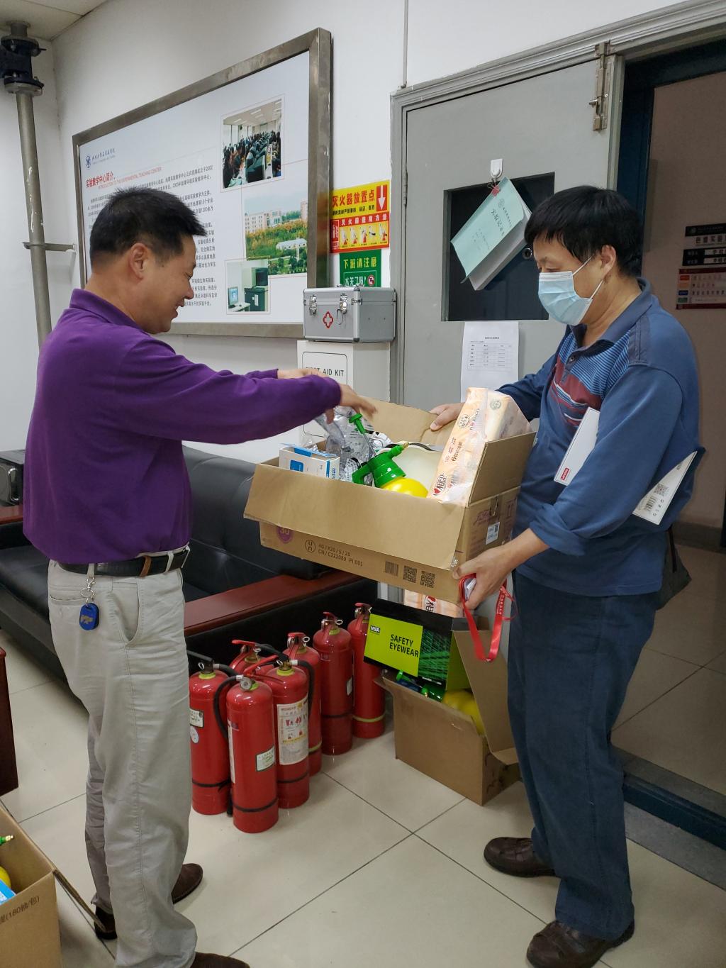根据学校要求,实验中心给学院所有实验室配备了个人防护及消杀物资,并分发到各个实验室负责人手中。