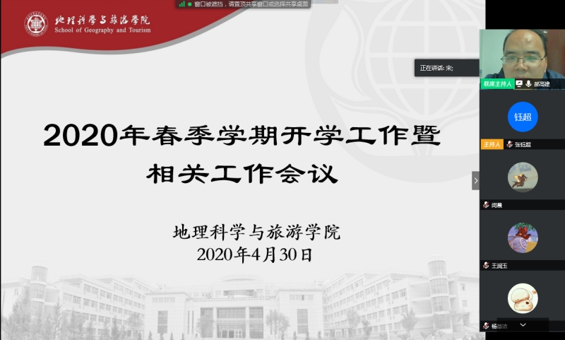 首先,郝高建传达了学校2020年春季学期学生开学工作会议精神,对研究生开学工作安排和本(预)科生开学工作实施方案做了说明,明确了学生返校时间及返校要求,从学生返校原则、返校时间、返校须知、基本流程、温馨提示、应急处置及注意事项等7个方面做了说明。同时就加强学生疫情防控教育、校纪校规教育及思想政治教育,强化防疫监督管理等方面做了安排。