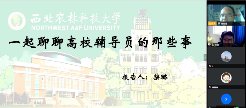 2020届毕业生提升竞业能力,4月26日下午,学院“校友归来话成长”第五场高校辅导员和管理岗位经验交流会举行。本次邀请了现任西北农林科技大学辅导员柴璐、2019届环境工程硕士生、西北大学辅导员孟庆彬、2019届人文地理学硕士生、西北大学人力资源部顾恺、2019届国土资源学硕士生、伊莉讨论区