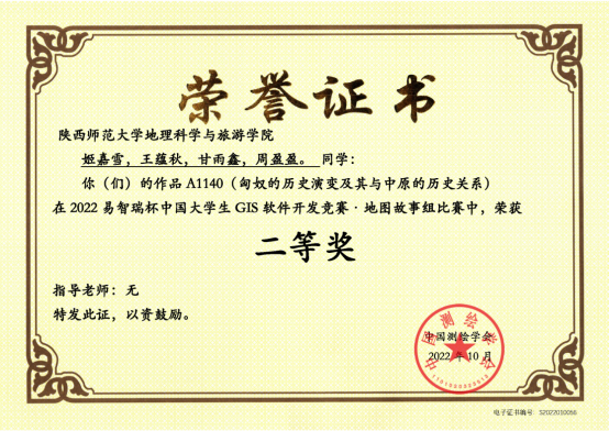 姬嘉雪、王蕴秋、甘雨鑫、周盈盈提交作品《匈奴的历史演变及其与中原的历史关系》,荣获地图故事组二等奖;
