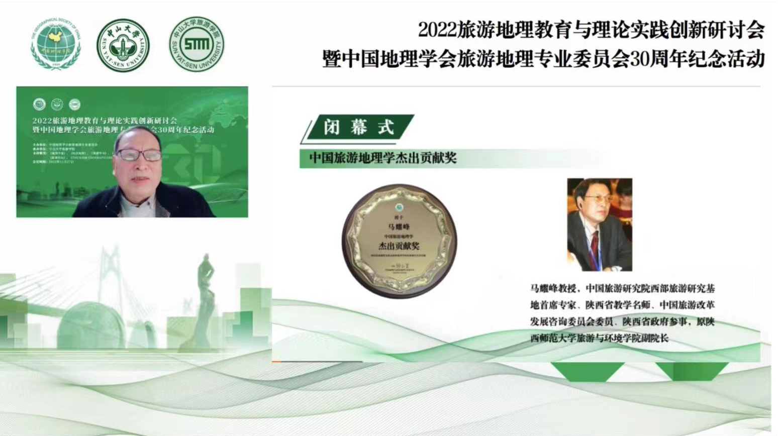2022年11月27日,旅游地理教育与理论实践创新研讨会暨中国地理学会旅游地理专业委员会30周年纪念活动正式召开,该会议由中国地理学会旅游地理专业委员会主办,由中山大学旅游学院承办。会议回顾了我国旅游地理学的发展历程与贡献,探讨了旅游地理教育与理论实践创新的前沿议题,展望了新时代旅游地理学的发展愿景。该会议设置中国旅游地理学杰出贡献奖,由中国地理学会旅游地理专业委员会组织专家评选,特别表彰在旅游地理学领域具有杰出贡献的两位学者。伊莉讨论区