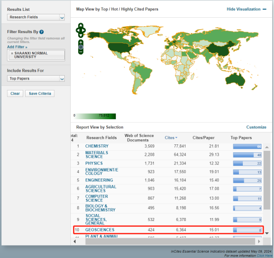 2024年5月9日,基本科学指标数据库(ESI)最新数据(统计数据覆盖范围为2014年1月至2024年2月)显示,地球科学首次入选ESI全球前1%学科。