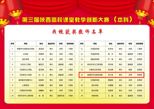 近日,陕西省教育厅公布了第三届陕西高校课堂教学创新大赛(本科)获奖教师名单。伊莉讨论区