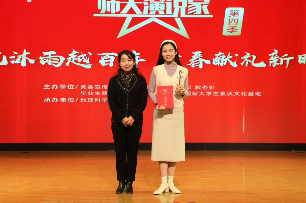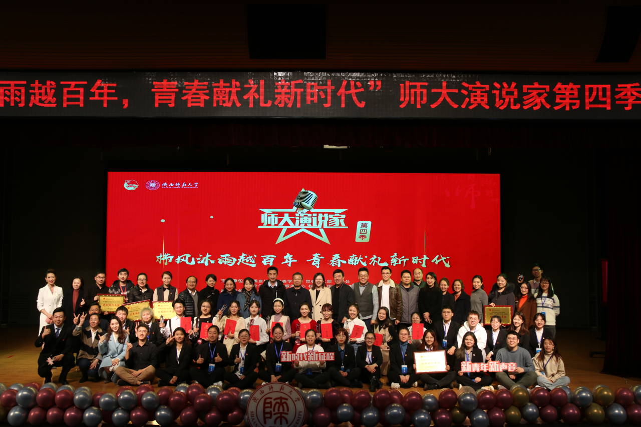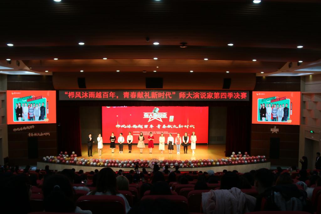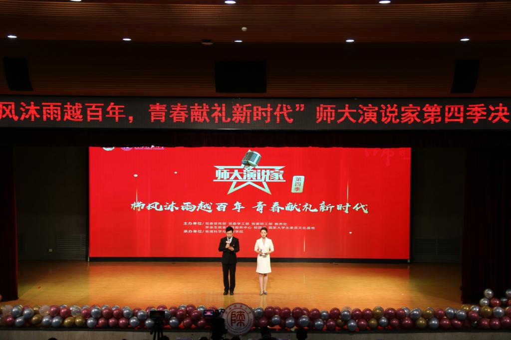 11月26日晚,由党委宣传部、党委学工部、党委研工部、教务处、毕业生就业指导服务中心、校团委、国家大学生素质文化基地主办,院团委承办的“师大演说家”第四季暨“栉风沐雨越百年 青春献礼新时代”主题演讲比赛决赛在长安校区新勇活动中心学生剧场举行。