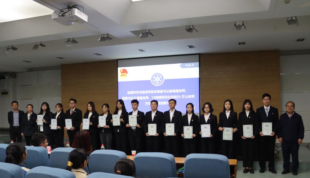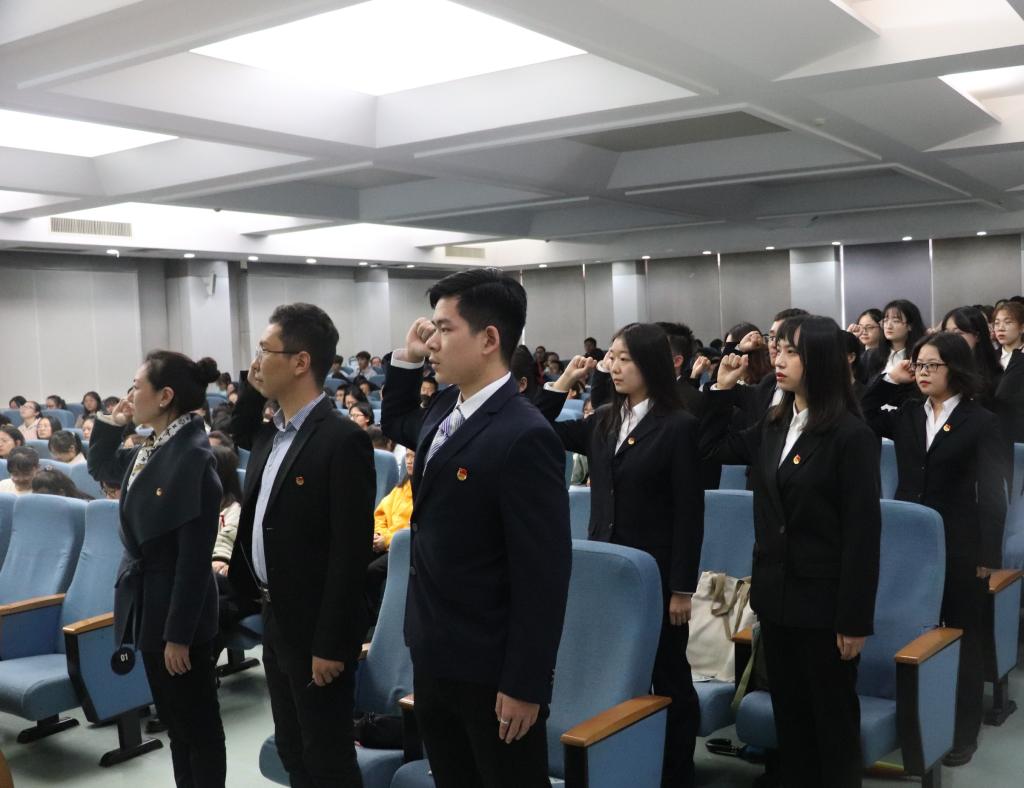 团委副书记刘南江带领全体学生干部庄严宣誓:为把地科院学生会建成一个凝聚、青春、担当的集体而努力奋斗!