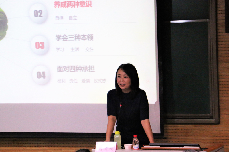报告伊始,刘老师便向学生抛出了一个问题——“你为什么上大学?”,随后,从一种精神、两种意识、三种本领、四种担当四个方面向同学们一一做了分享。报告中,刘老师以幽默风趣的语言,平和亲近的风度,告诉同学们要尽快适应大学生活,完成个人角色的转换,并且鼓励大家要有目标的去培养一种兴趣,提高自身能力,以阳光自信的态度去面对今后的生活,以成人的思维方式走好对自己、对他人、对社会负责的人生轨迹。