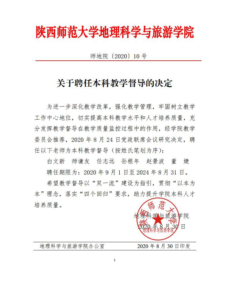 关于聘任本科教学督导的决定