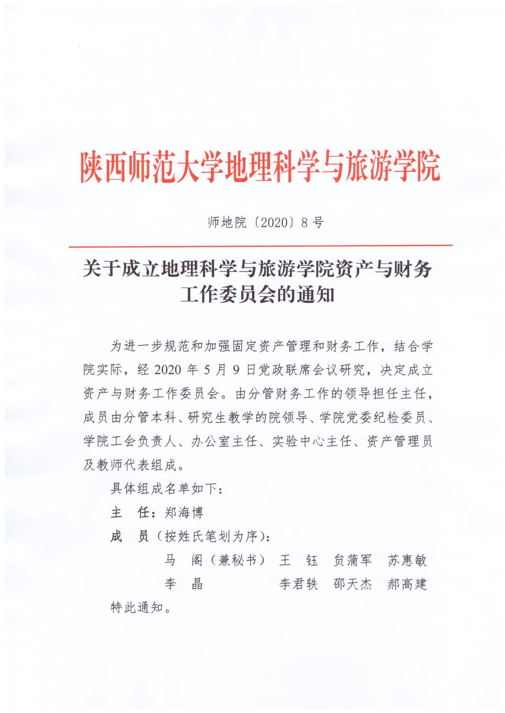 关于成立资产与财务工作委员会的通知
