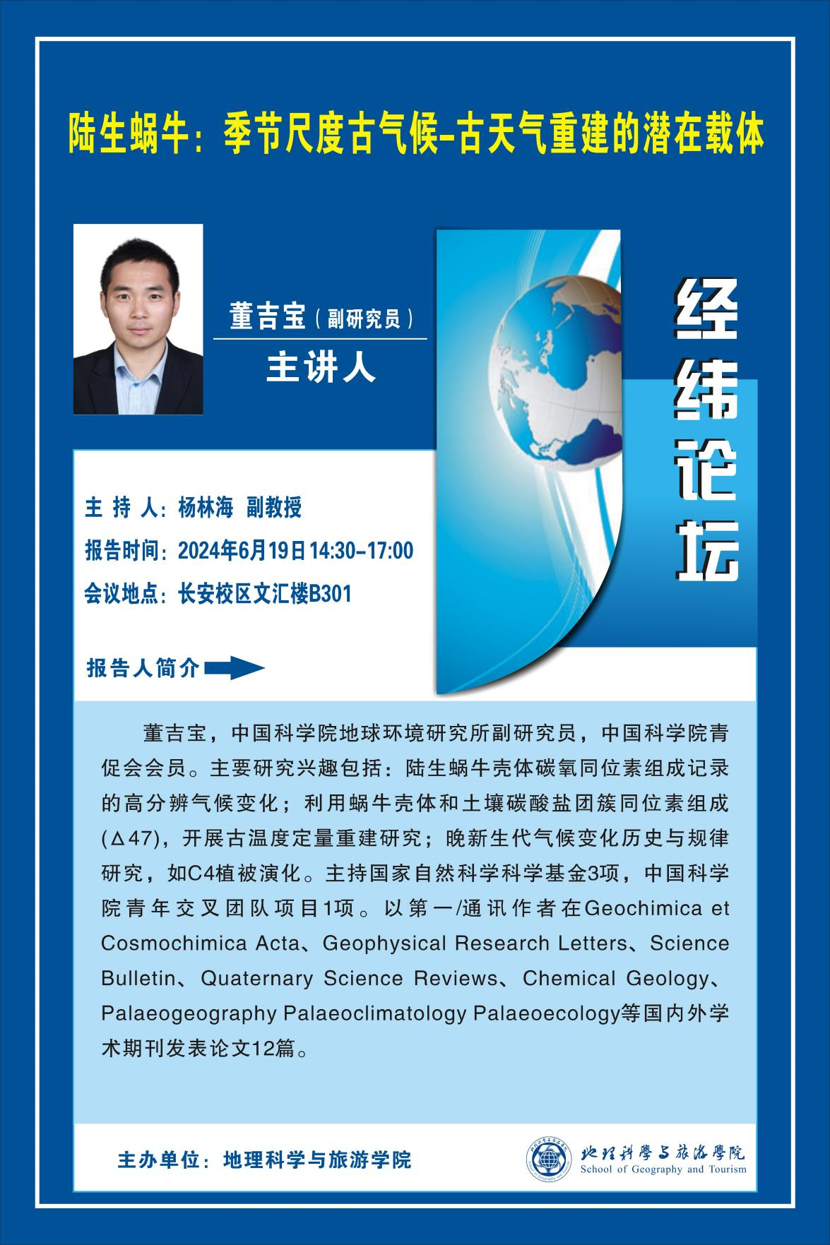 经纬论坛--陆生蜗牛:季节尺度古气候-古天气重建的潜在载体